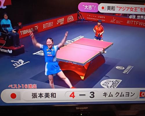 張本美和選手、難敵を撃破!!女子シングル ベスト16進出!! 21日、世界卓球 ドーハ