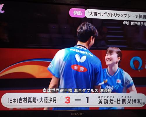 混合ダブルス 大吉ペア、吉村真晴選手、大藤沙月選手ペアが決勝進出!! 世界卓球ドーハ2025 準決勝 23日
