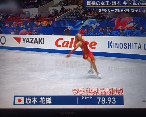 フィギュアスケート・グランプリシリーズ第4戦 NHK杯 女子ショートプログラム 坂本花織選手が今シーズン世界最高点!!(8日、国立代々木競技場第一体育館)