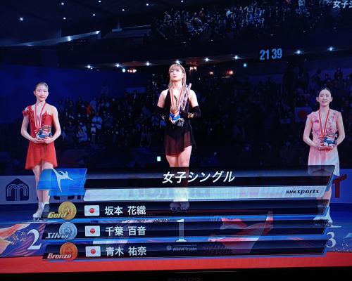 フィギュアスケート・グランプリシリーズ第4戦 NHK杯 女子フリープログラム 坂本花織選手が優勝!!今シーズン世界最高点!!(8日、国立代々木競技場第一体育館)