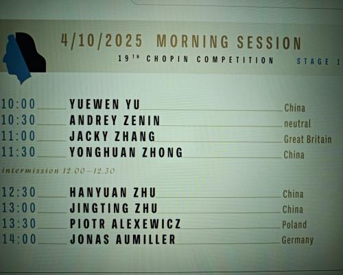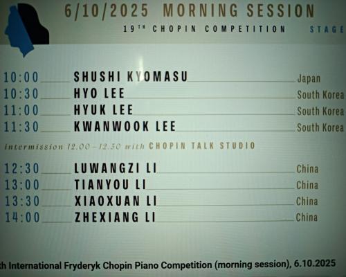 第19回ショパン国際ピアノコンクール 第一次予選 3日目 午前の部 のコンペティターとプログラム 現地時間5日午前10時 日本時間5日午後5時