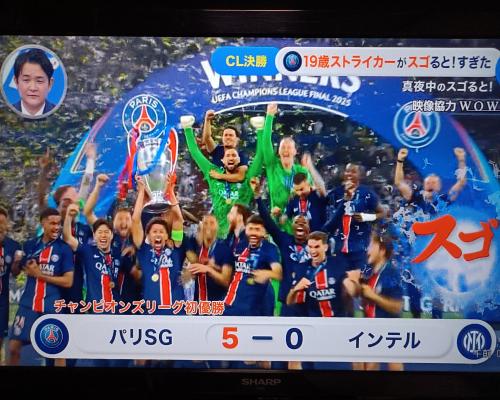 パリ・サンジェルマン、ヨーロッパチャンピオンズリーグ初優勝!! パリ・サンジェルマン5−0インテル ヨーロッパチャンピオンズリーグ決勝