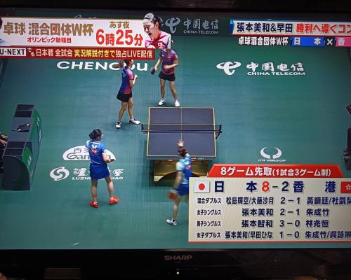 卓球混合団体ワールドカップ 第2ステージ第1試合 日本―香港 日本8−2香港 3日、中国 成都