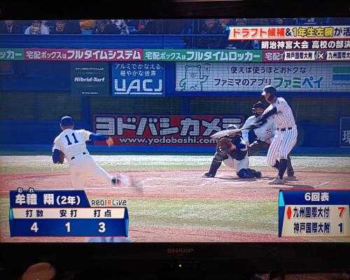牟禮 翔選手(2年) 4打数1安打3打点!! 神戸国際大附―九州国際大付 明治神宮大会 高校の部 決勝
