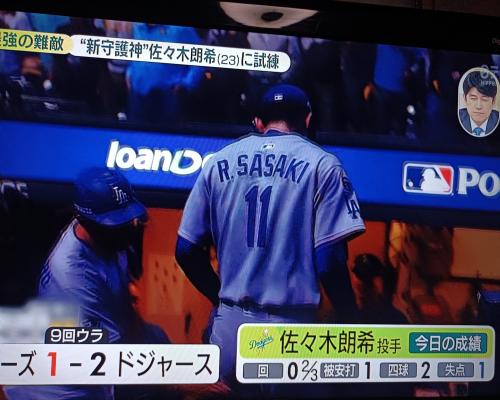 9回裏登板の佐々木朗希投手は1失点 ナ・リーグ優勝決定シリーズ第1戦 ドジャース2―1ブルワーズ 13日、ミルウォーキー