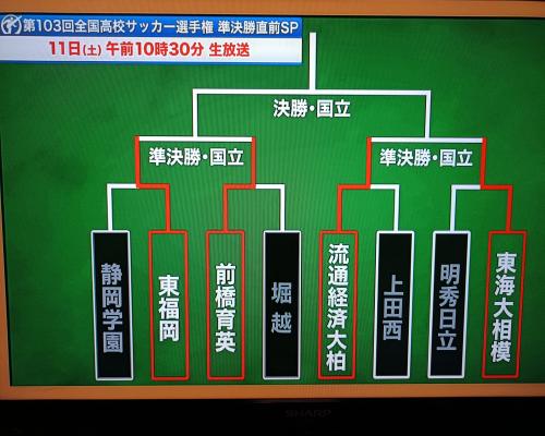 第103回全国高校サッカー選手権 準決勝 1月11日 東福岡(福岡)VS前橋育英(群馬) 流通経済大柏(千葉)VS東海大相模(神奈川) 国立競技場