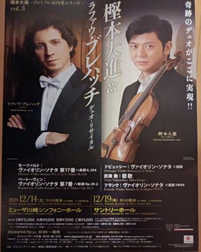 奇跡のデュオ!!樫本大進さんとラファウ・ブレハッチさんのデュオリサイタルのフライヤーが届きました!(12月14日、土曜日、ミューザ川崎 12月19日、木曜日、サントリーホール)