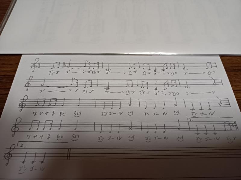 中山雅史さんのチャントを楽譜にしてみました。その2 中山隊長ゴンゴール ゴンゴール ゴンゴール 聴音