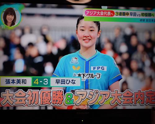 張本美和選手 全日本卓球選手権 女子シングル初優勝!! 張本美和4−3早田ひな アジア大会内定!!