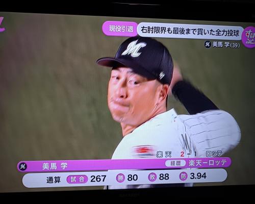 美馬学投手、現役引退 最後の投球!! 楽天2-1ロッテ 30日、ZOZOマリンスタジアム