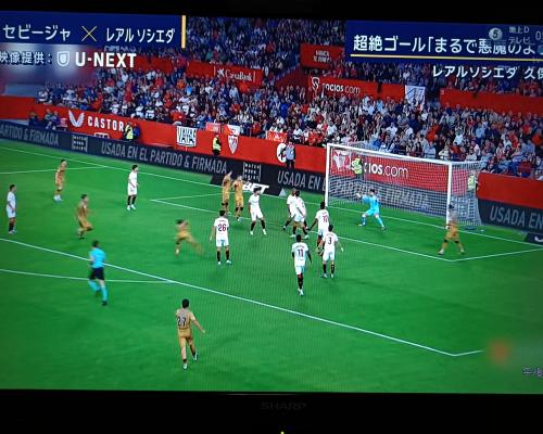 久保建英選手、素晴らしいゴール!!(4日、スペインリーグ第12節 セビージャVSレアル・ソシエダ ラモン・サンチェス・ピスフアン)