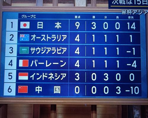 日本代表が3戦全勝で首位キープ!!(サッカーワールドカップアジア最終予選グループC 第3戦終了)