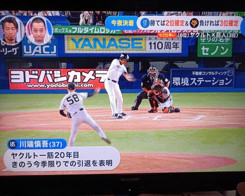 ヤクルト一筋20年 川端慎吾選手、最後の打席 ヤクルト―巨人 28日、神宮