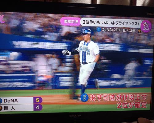 ベイスターズ、勝利!! 今日27日に引き分け以上で2位確定!! DeNA5−4巨人 26日、横浜スタジアム