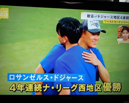 ドジャース4年連続ナ・リーグ西地区優勝!! ドジャース8―0ダイヤモンドバックス 25日、ドジャースタジアム