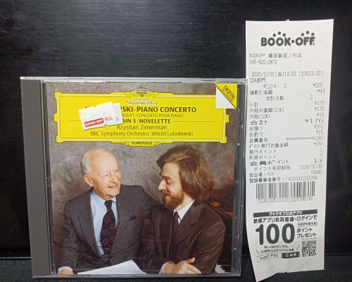 横須賀市のブックオフ堀ノ内店で 名盤!!巨匠、ルトスワフスキーがクリスティアン・ツィメルマンのために作曲されたピアノ協奏曲などのCDが超激安!!
