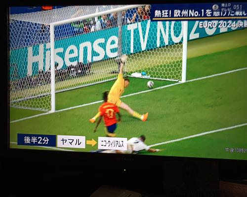 EURO2024決勝、スペインVSイングランド、後半2分、スペイン代表ニコ・ウィリアムスが先制ゴール