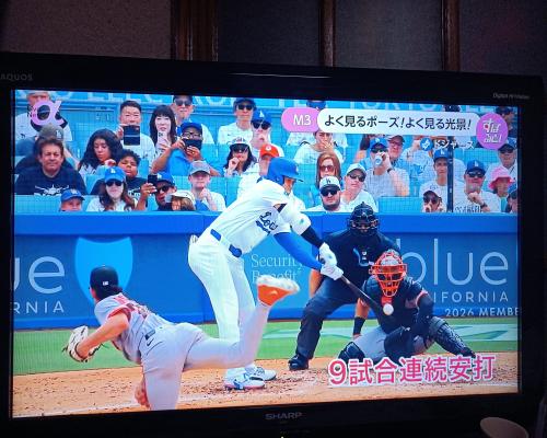 大谷翔平選手、9試合連続安打!! ドジャース―ジャイアンツ 21日、ドジャースタジアム