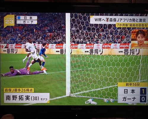 前半14分、南野拓実選手ゴール!! 日本代表―ガーナ代表 豊田スタジアム |