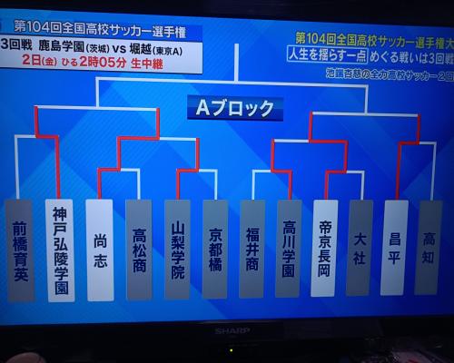 第104回全国高校サッカー選手権 Aブロック3回戦の組み合わせ |