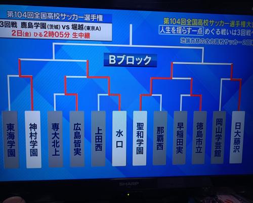 第104回全国高校サッカー選手権 Bブロック 3回戦の組み合わせ |