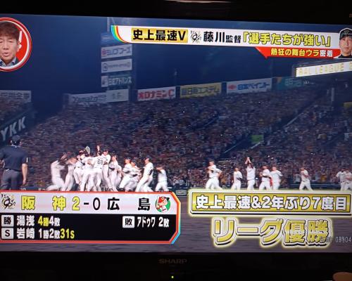 阪神セ・リーグ優勝!!史上最速!!2年ぶり7度目!! 阪神2−0広島 7日、甲子園