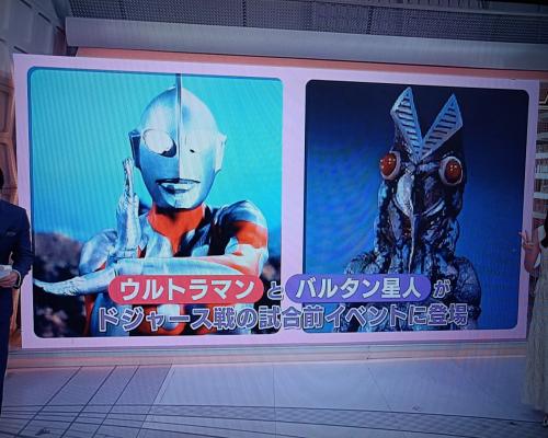 現地時間26日、ドジャース戦の試合前のイベントになんと ウルトラマンとバルタン星人が登場!!