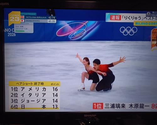 りくりゅう 1位!! ペア終了時 日本6位 フィギュア団体 ミラノコルティナオリンピック