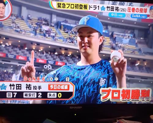 ベイスターズ24年ドラフト1位ルーキー竹田祐投手、プロ初勝利!! 中日6−0DeNA 16日、ナゴヤドーム