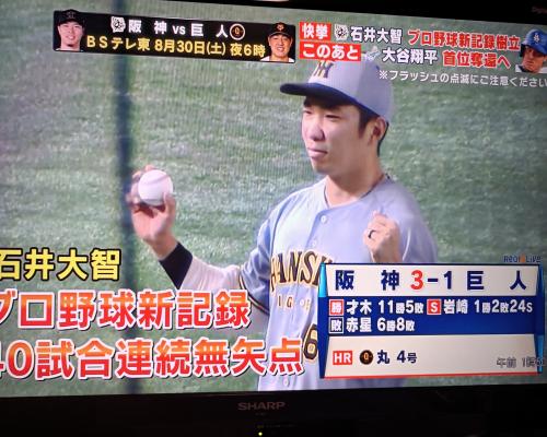 石井大智投手、40試合連続無失点!!プロ野球新記録!! 阪神3−1巨人 17日、東京ドーム