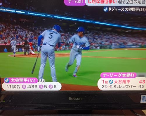 大谷翔平選手、ナ・リーグホームラン争い単独トップ!! 4試合連続43号ソロホームラン エンゼルス―ドジャース 12日、エンゼルスタジアム