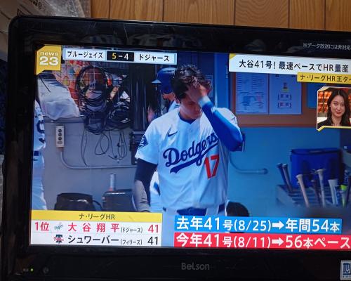大谷翔平選手、再びナ・リーグ ホームラン争いトップタイ!! ドジャース5−4ブルージェイズ 10日、ドジャースタジアム