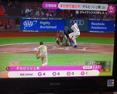 ダルビッシュ投手、快投!!2勝目!! ジャイアンツ1−4パドレス 11日、オラクル・パーク