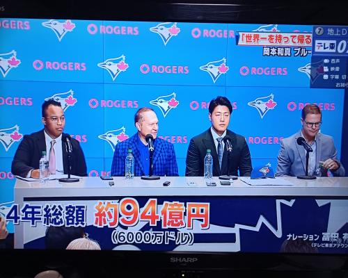 岡本和真選手、ブルージェイズ入団会見 4年総額 約94億円(6000万ドル)