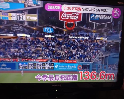 大谷翔平選手、超特大6号ホームラン!! 今シーズン最長飛距離136.6メートル ドジャース8-7ロッキーズ 16日、ドジャースタジアム