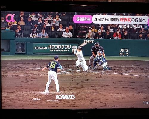 石川雅紀投手、24年連続勝利!!史上初!! 45歳、現役最年長 阪神3−5ヤクルト 9日、甲子園
