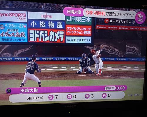 田嶋大樹投手、5回を無四球、無失点!!初勝利!! 楽天1―4オリックス 11日、楽天モバイル