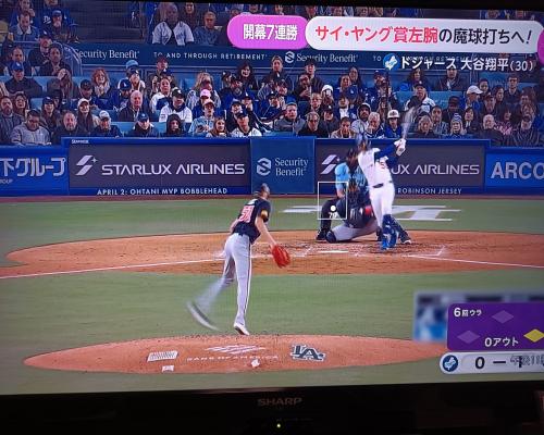 ドジャース開幕7連勝!! 昨年、サイ・ヤング賞、C.セールから勝利!! ドジャース3−1ブレーブス 1日、ドジャースタジアム
