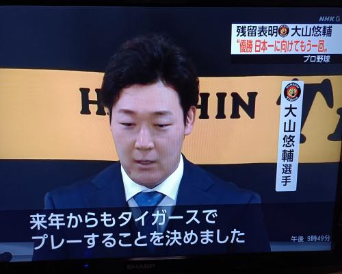 大山悠輔選手、阪神残留表明!