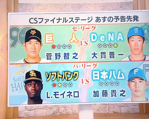 セ・リーグ、パ・リーグ クライマックスシリーズファイナルステージの17日の予告先発が発表されました。