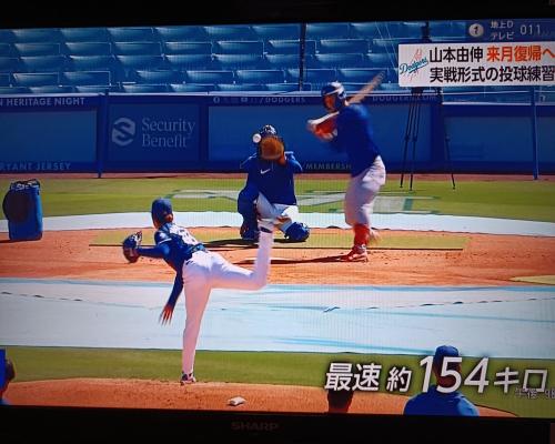 山本由伸投手、実戦形式の投球練習で最速154キロ!!