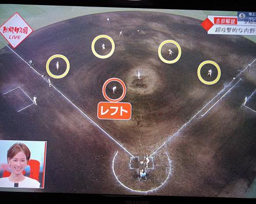 早稲田実VS大社の大社の攻撃9回裏1アウト2塁3塁で内野手が5人という早稲田実のとった驚きのシフトが成功。(第106回全国高校野球選手権大会11日目3回戦) 続きを読む