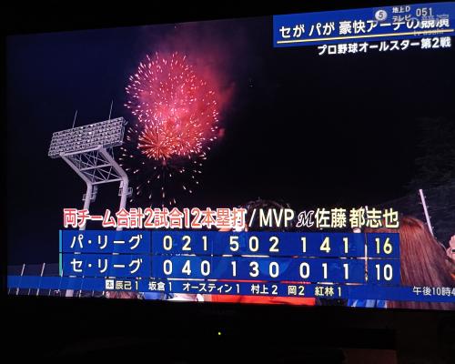 プロ野球オールスター第2戦(マイナビオールスターゲーム2024第2戦)が神宮球場で行われパ・リーグが16−10でセ・リーグに打ち勝ちました。