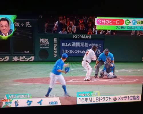 14日、ケイ投手(横浜DeNAベイスターズ)が8回被安打2、6奪三振、無失点で巨人を圧倒!5勝目!